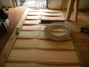 床材内に温水パイプを内蔵した商品で納まりの点で